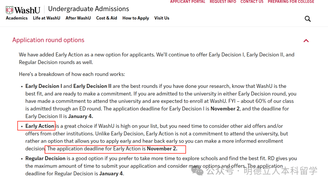 此前,Washu已有ED1、ED2、RD三轮申请轮次,这番调整意味着2027Fall的WashU申请者将拥有ED1+EA+ED2+RD的四重选择,灵活选择的空间更大了!