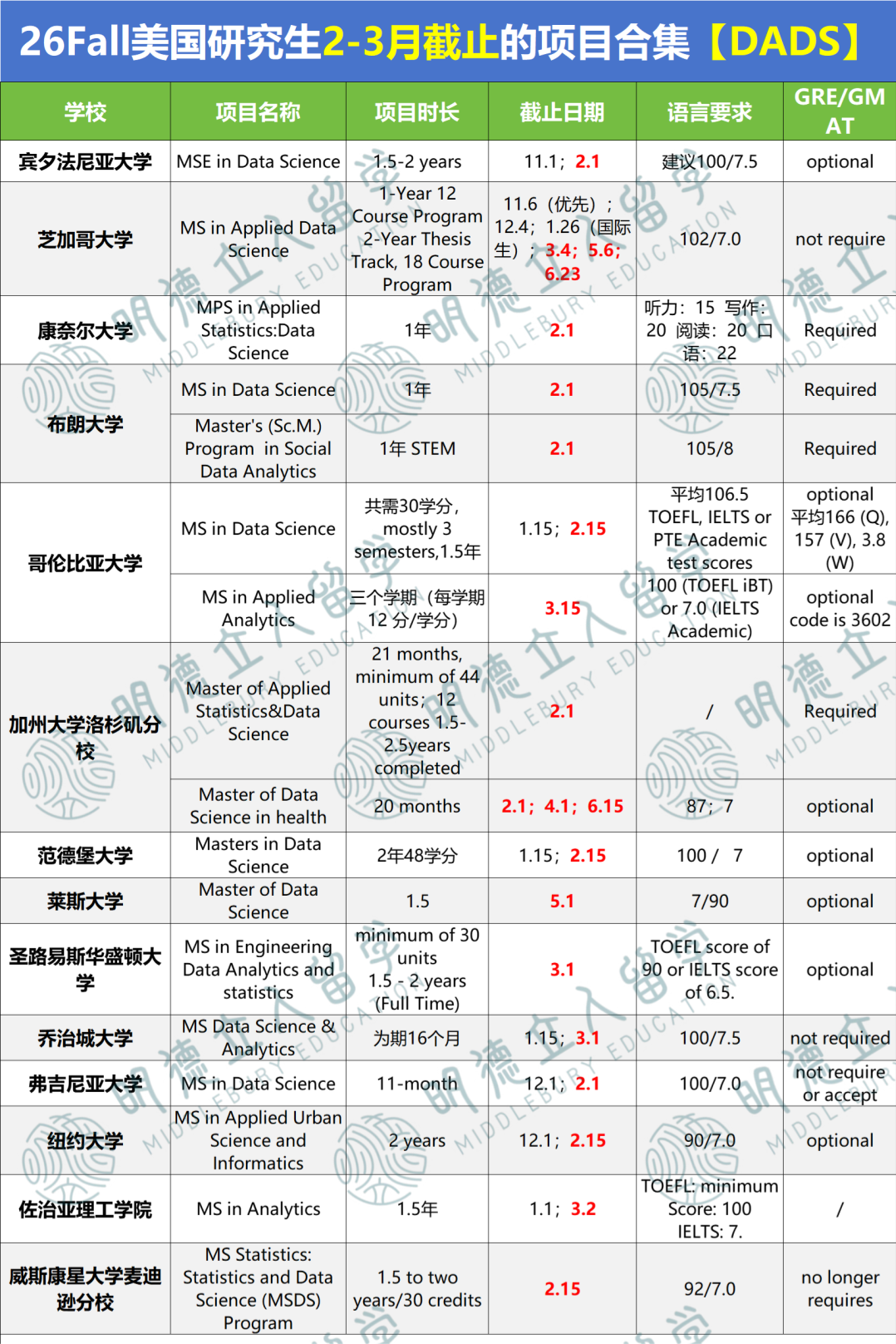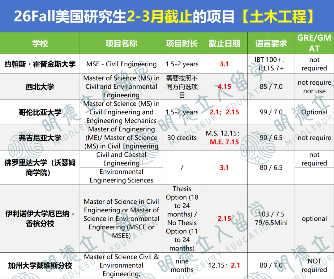 刚刚步入2026年,26Fall美国硕士申请也正迈入冲刺阶段,不少项目的DDL正在逼近。