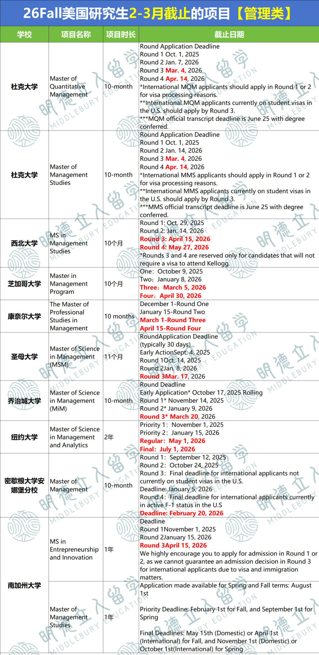 就比如杜克的MQM和MMS项目,提醒国际申请者应因签证处理原因在第一轮或第二轮申请。