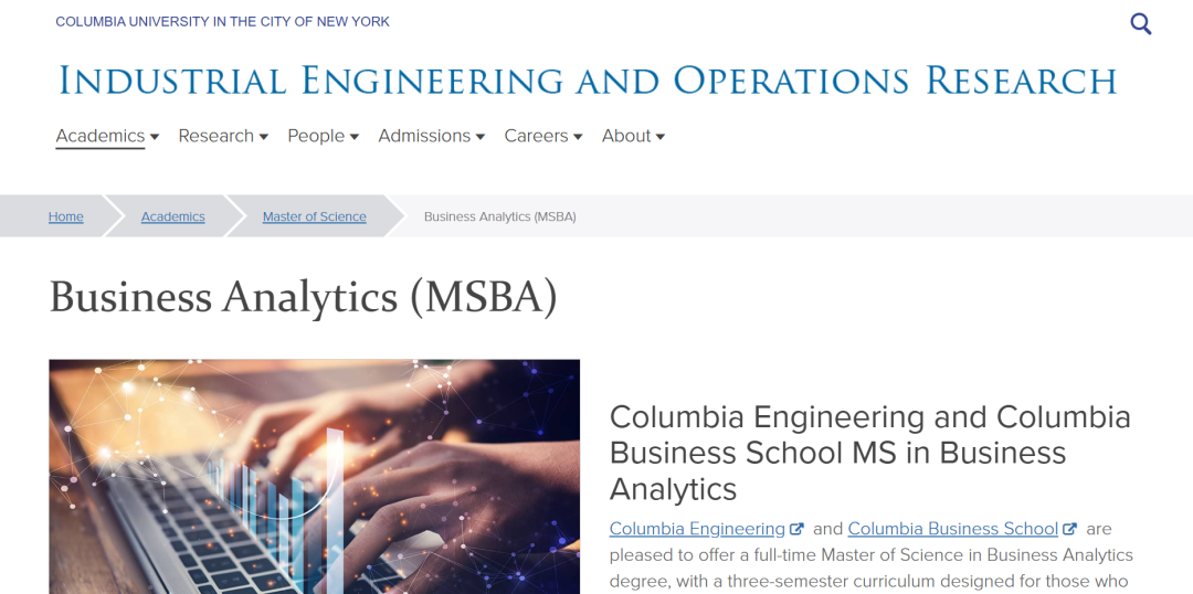 哥大的商业分析硕士(MSBA)项目重在培养学生使用数据、统计和定量分析以及解释模型、预测模型来开发对业务绩效的新观点的能力。