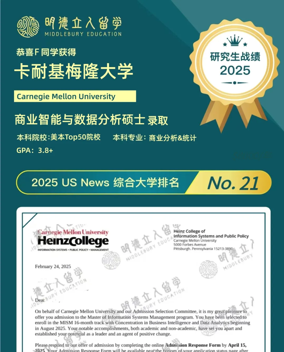 项目没有公布录取画像,但是通过明德往期申请经验来看: