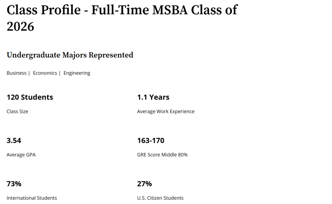 从申请的角度来说,MSBA项目给出了2026届录取画像: