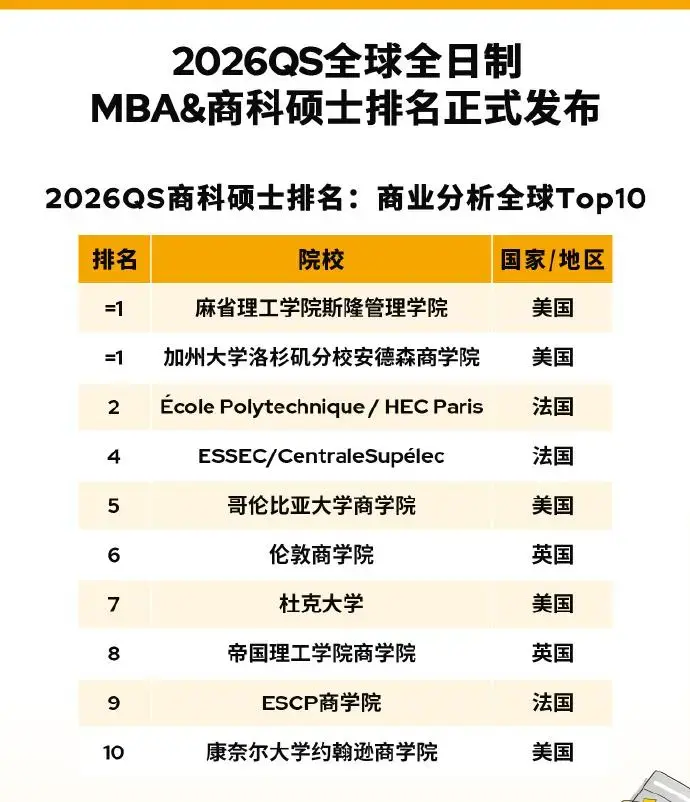 QS商业分析硕士专业排名
