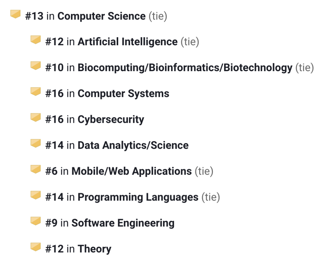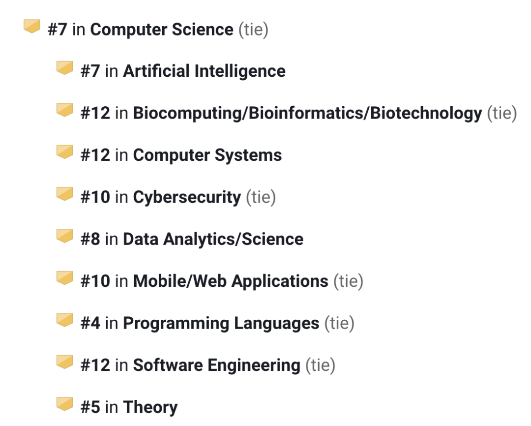 它的计算机科学领域在全美排第7名,其中: