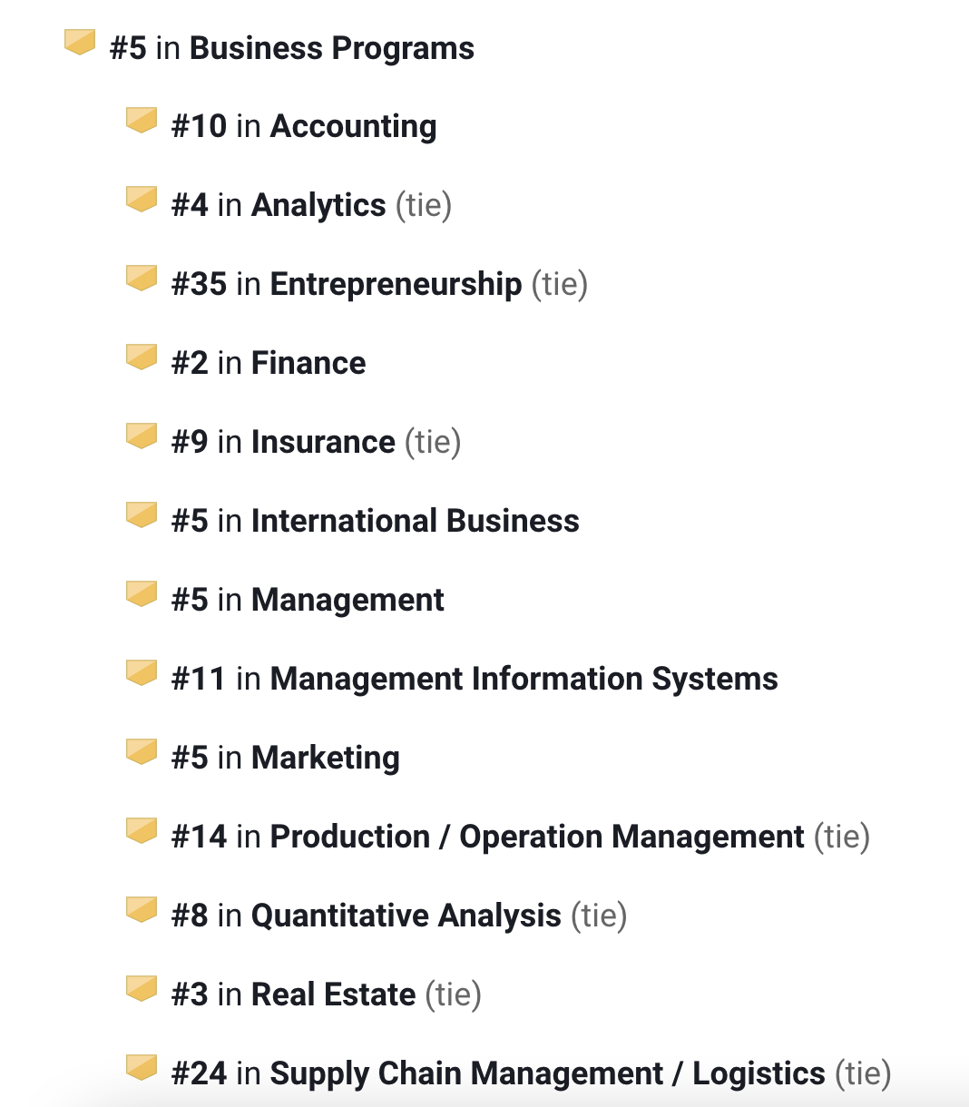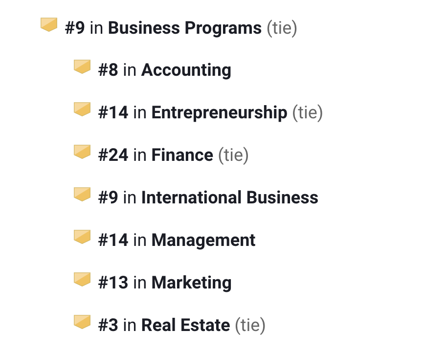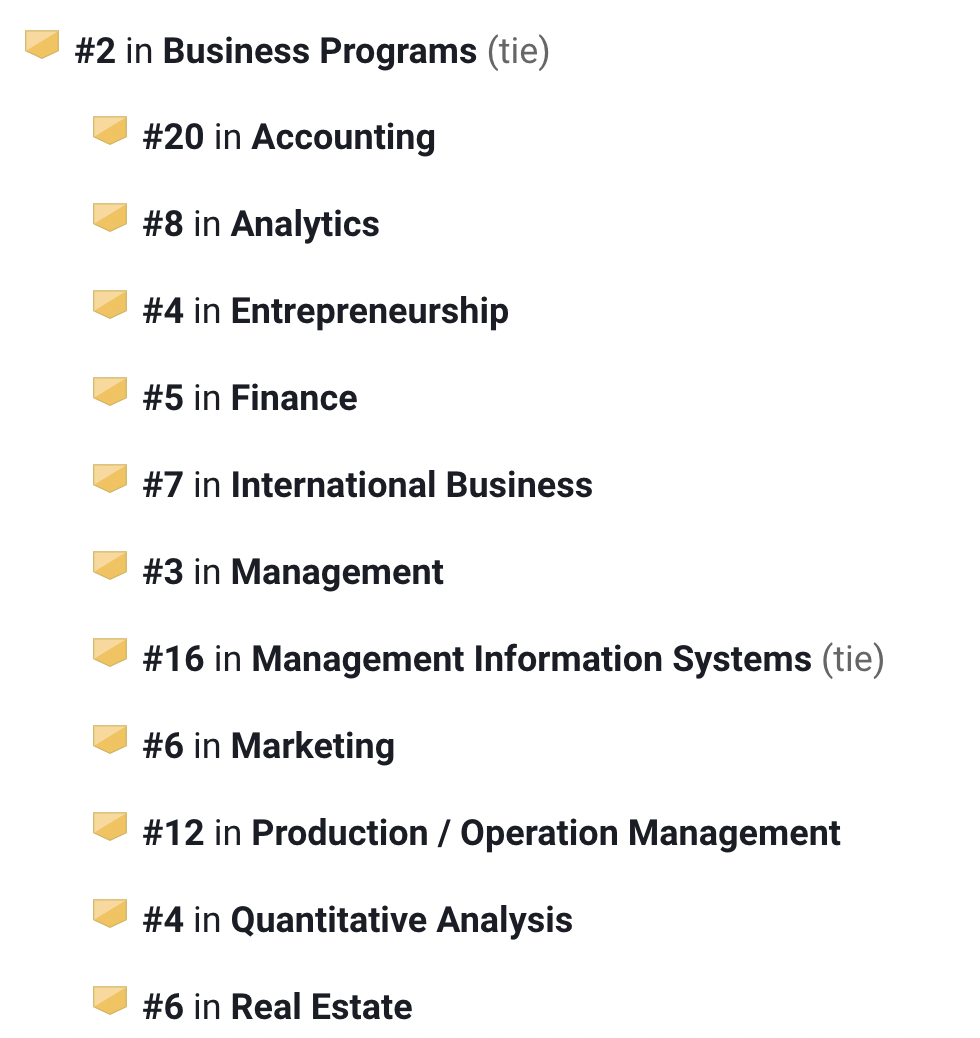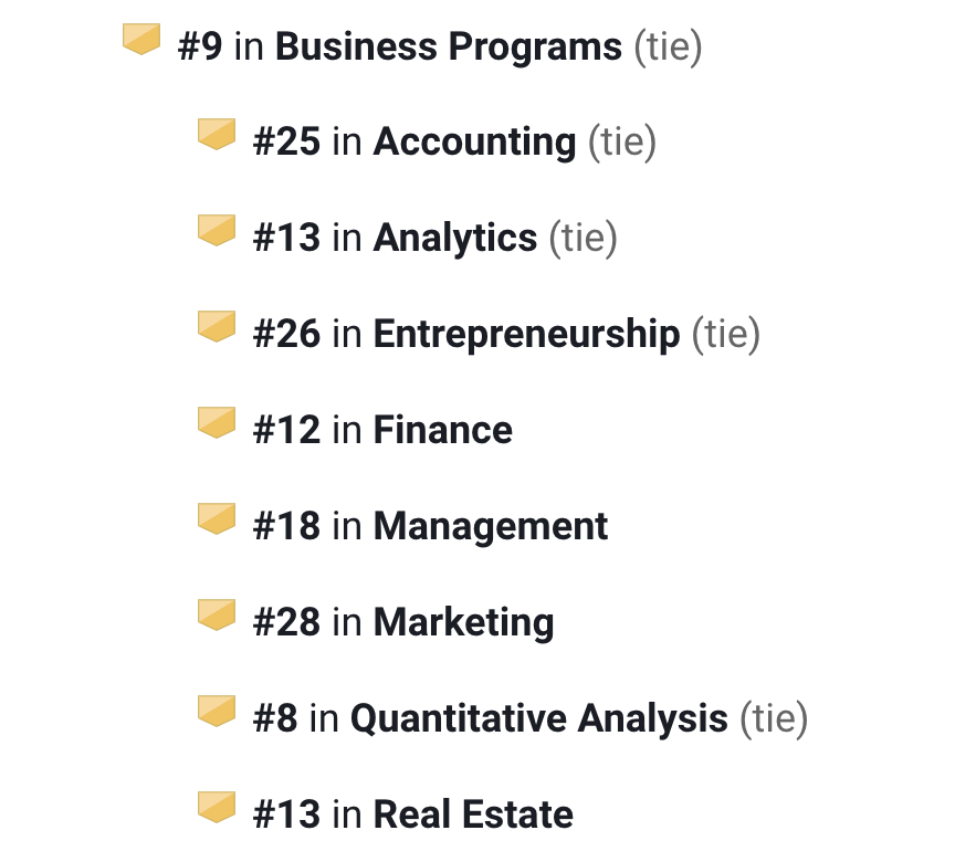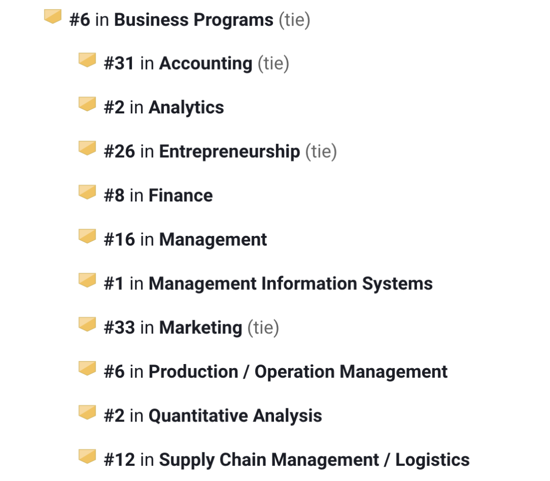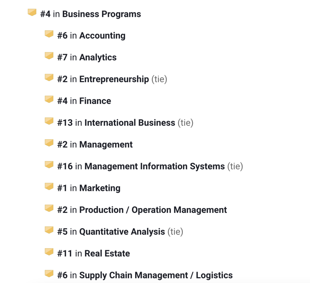 商科项目全美第4,细分专业中的: