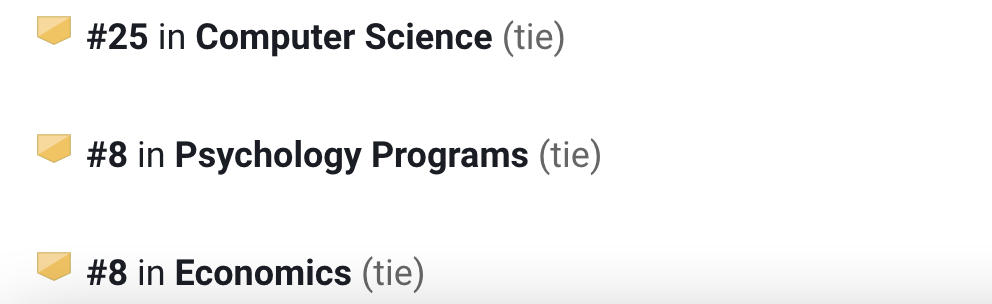 在U.S.News专业排名中,生物医学全美第17名、定量分析全美第10、心理学第14名。