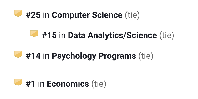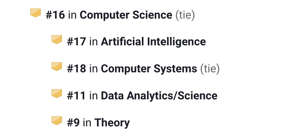 计算机科学领域全美第25:其中数据分析/数据科学第15