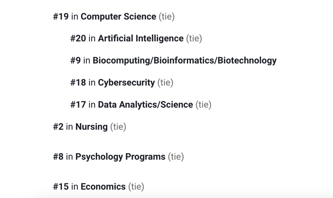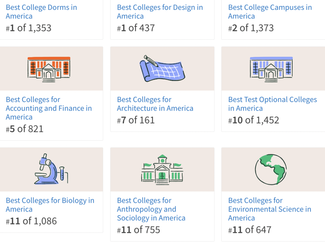 它的工程项目更是不容小觑,多个细分专业在全美前10,其中: