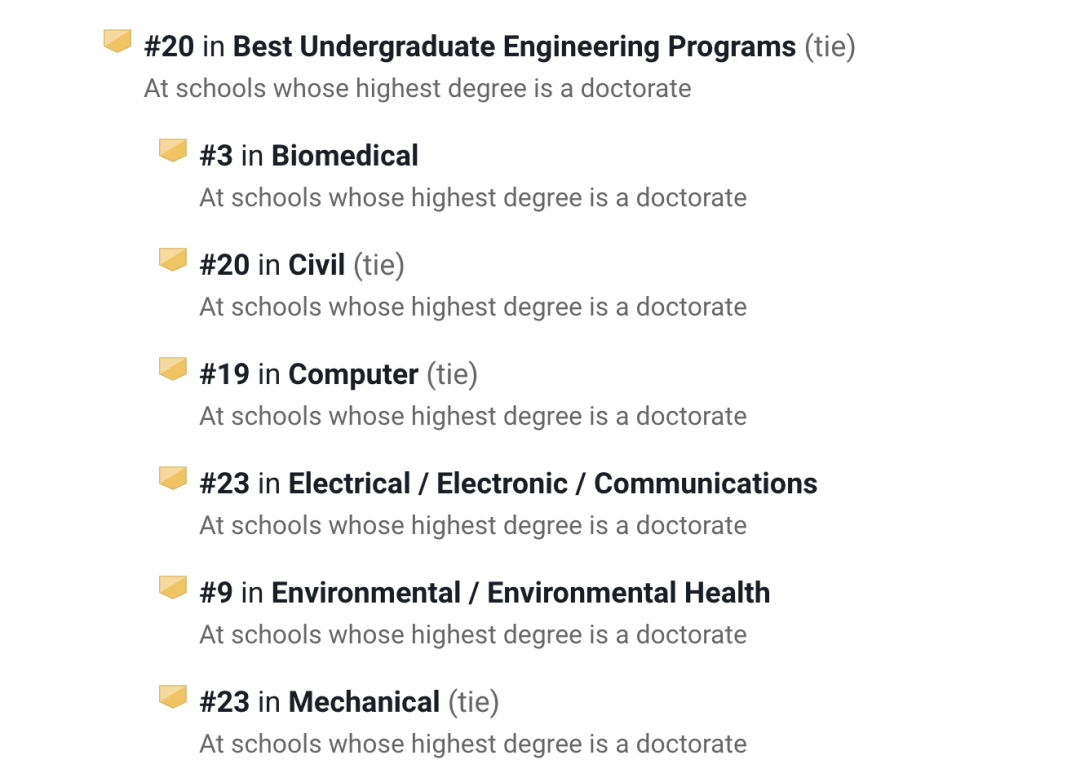 本科工程项目排第20名,该领域下的生物医学工程全美第3