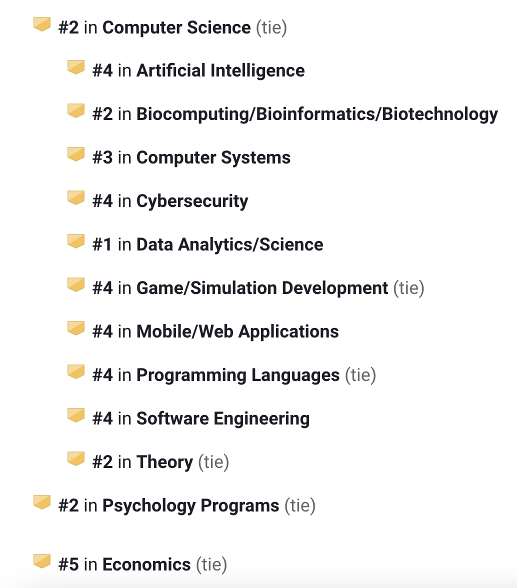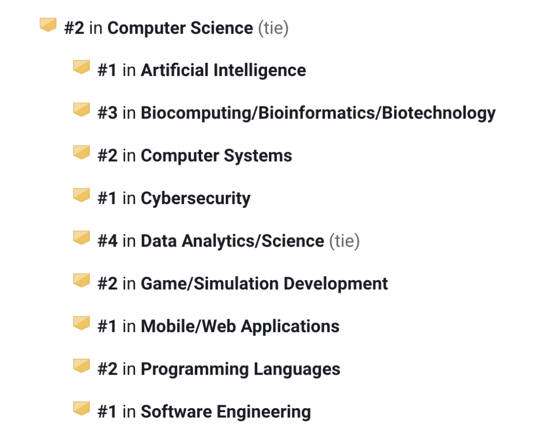 计算机科学领域全美第19名,其中游戏/模拟开发全美第1名。