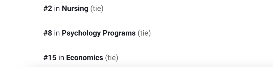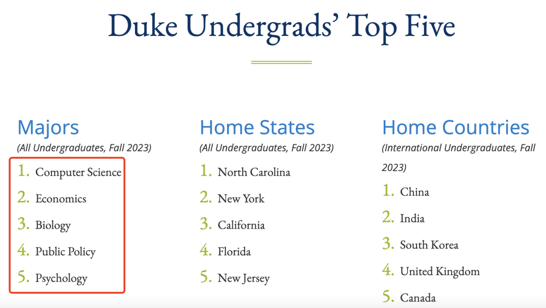 杜克大学在其官网公布排名前5的专业分别是: