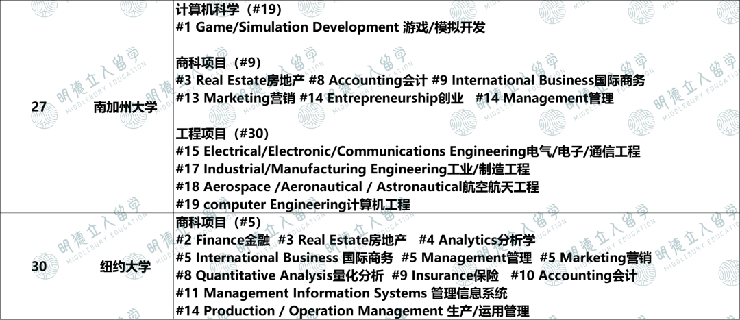 本科工程项目在全美第30名,其中: