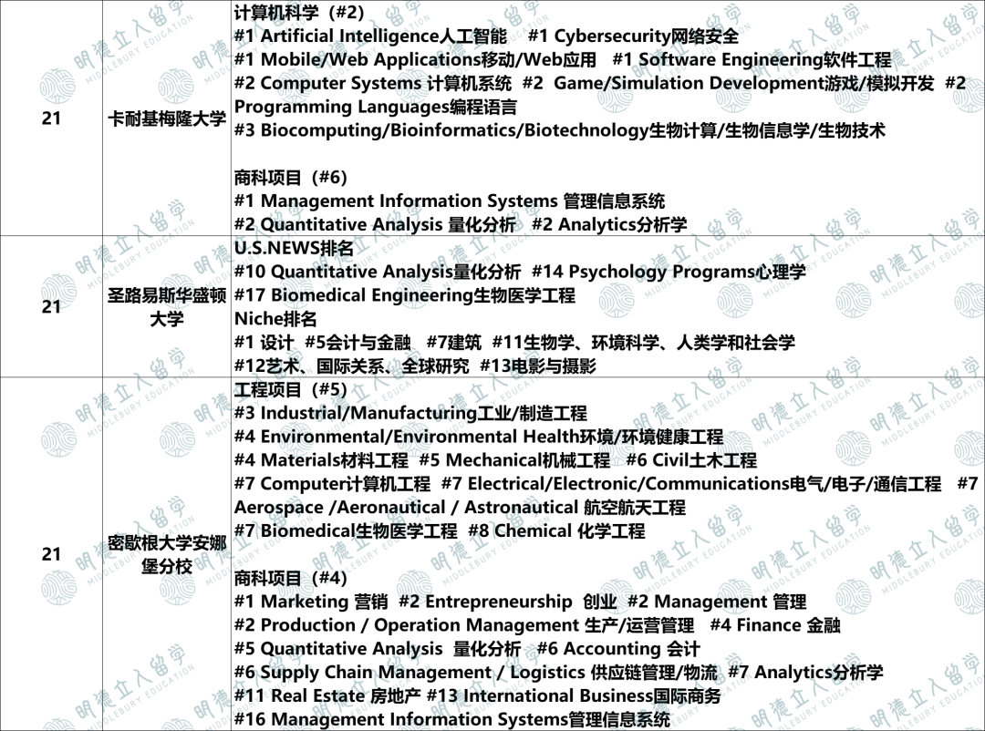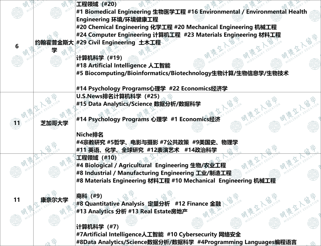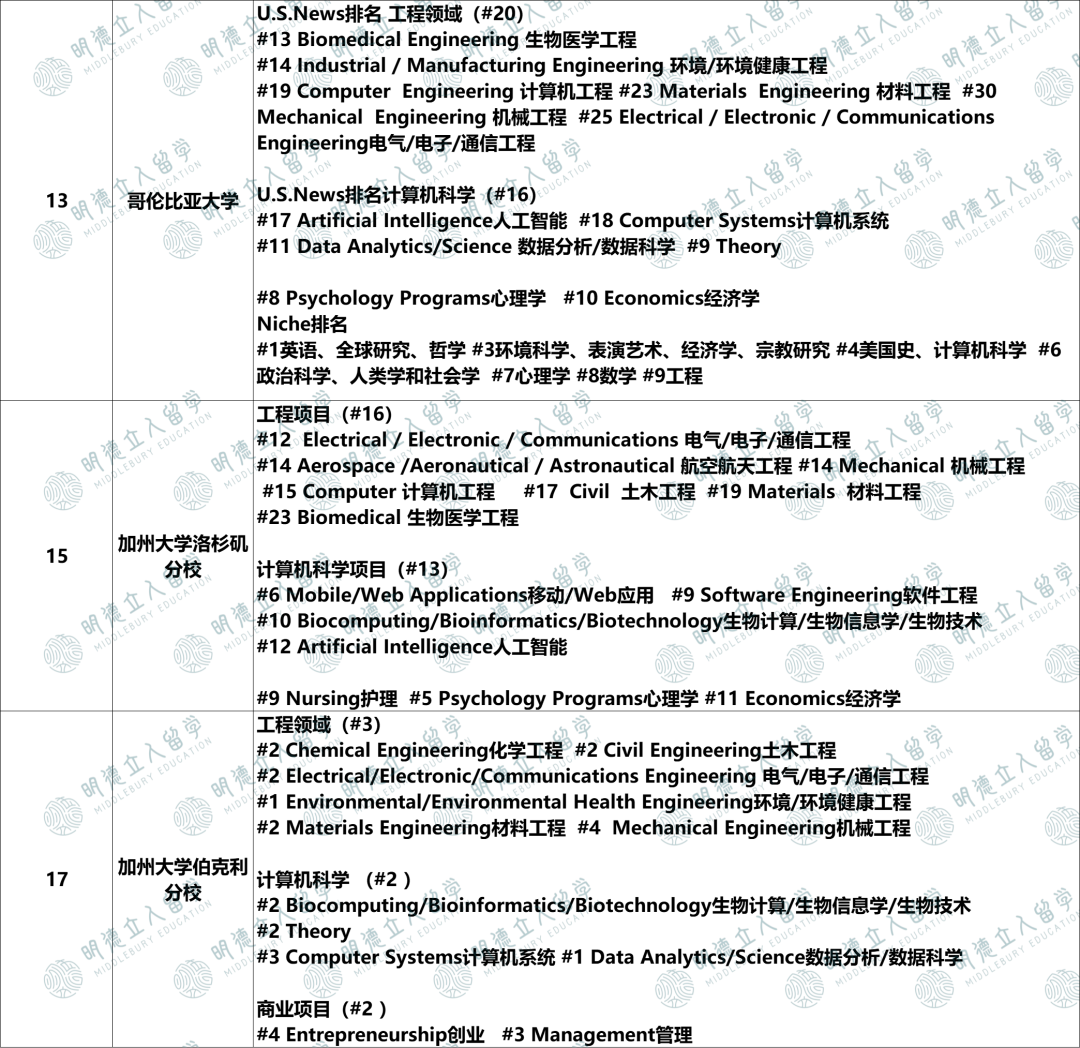 它的工程领域全美第16名,其中: