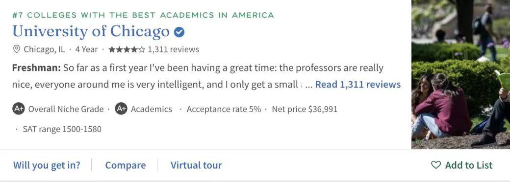 在Niche榜单中,芝大的: