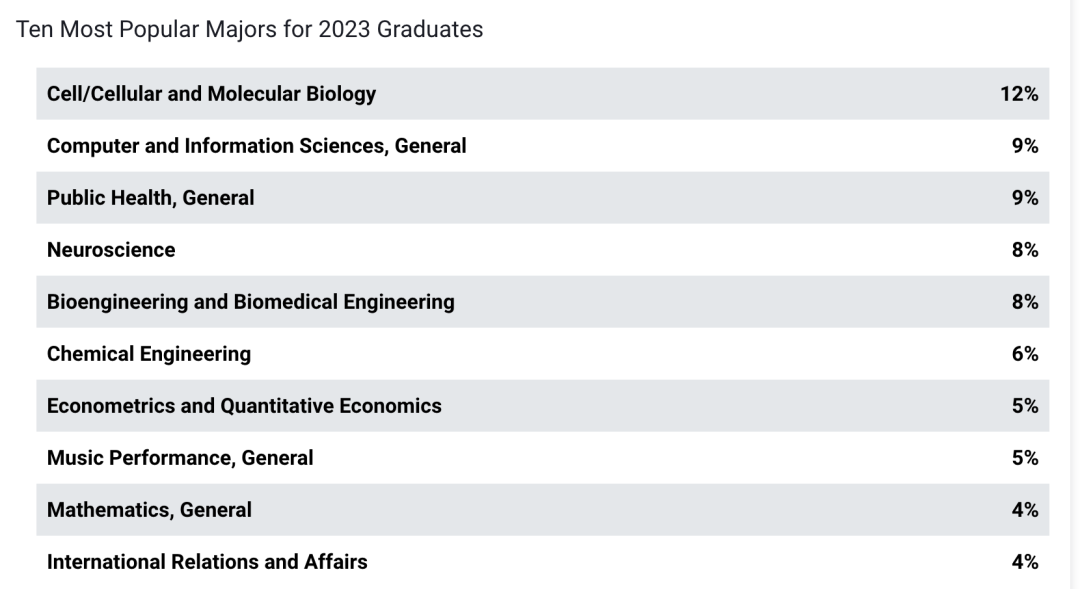 2023年最受欢迎的10大专业分别是: