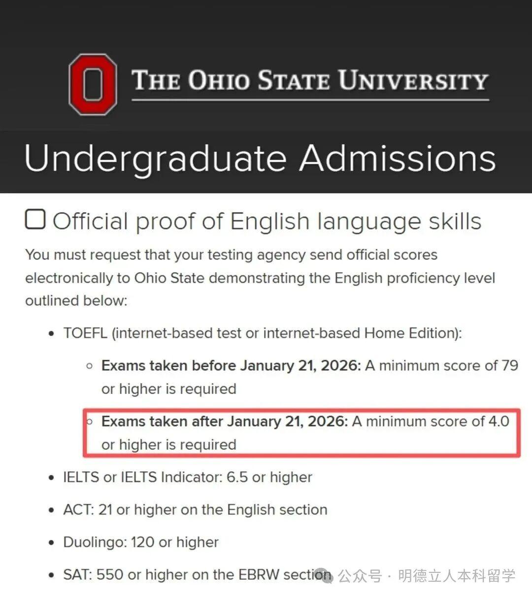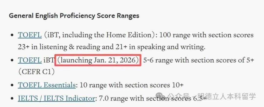 2026年1月21日之后的新版托福,最低要求提升至5分。