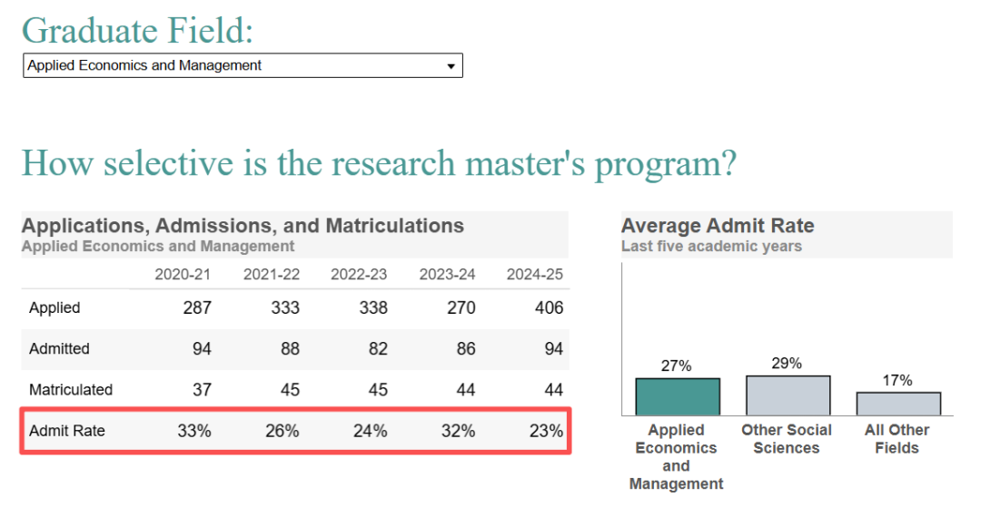24/25申请人数暴涨,从270人增长至406,但录取率对照上一年有所下降,录取率仅为23%,说明录取要求更加严格。