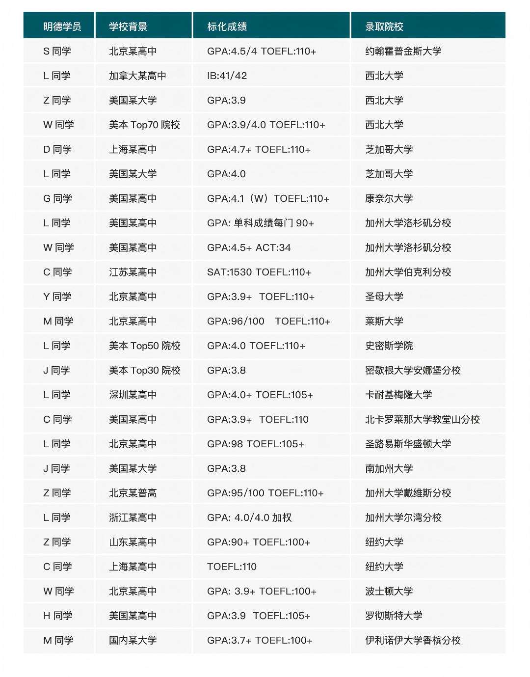 录取案例: JHU、Northwestern、U-Chicago、UCLA、UCB、Notre Dame、Umich、CMU、UNC、WUSTL、USC、UCD、UCl、NYU、Smith College、Rochester、UlUC 等