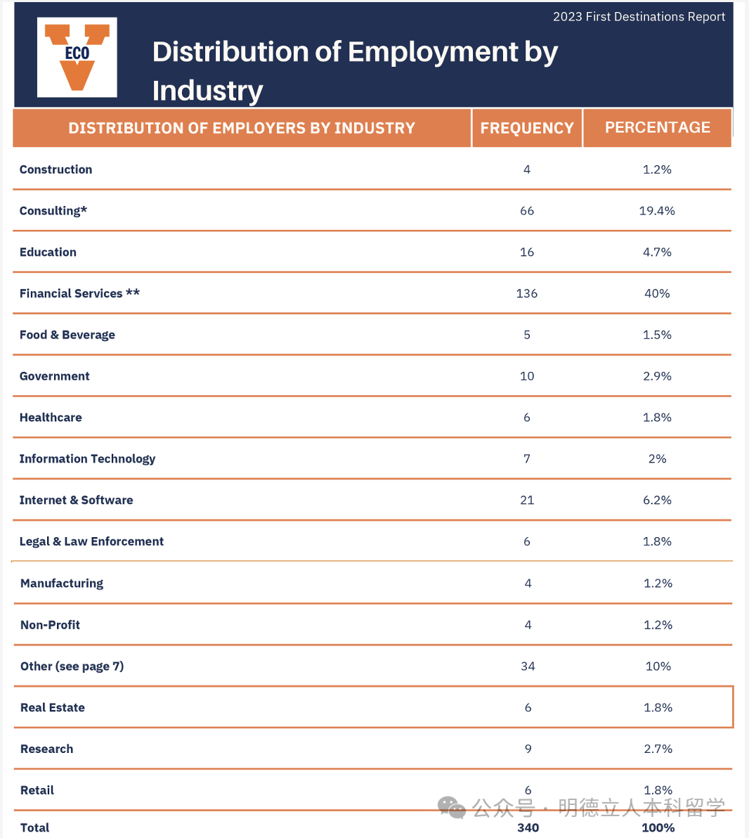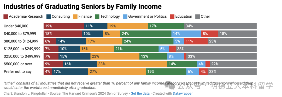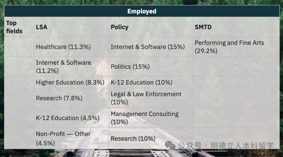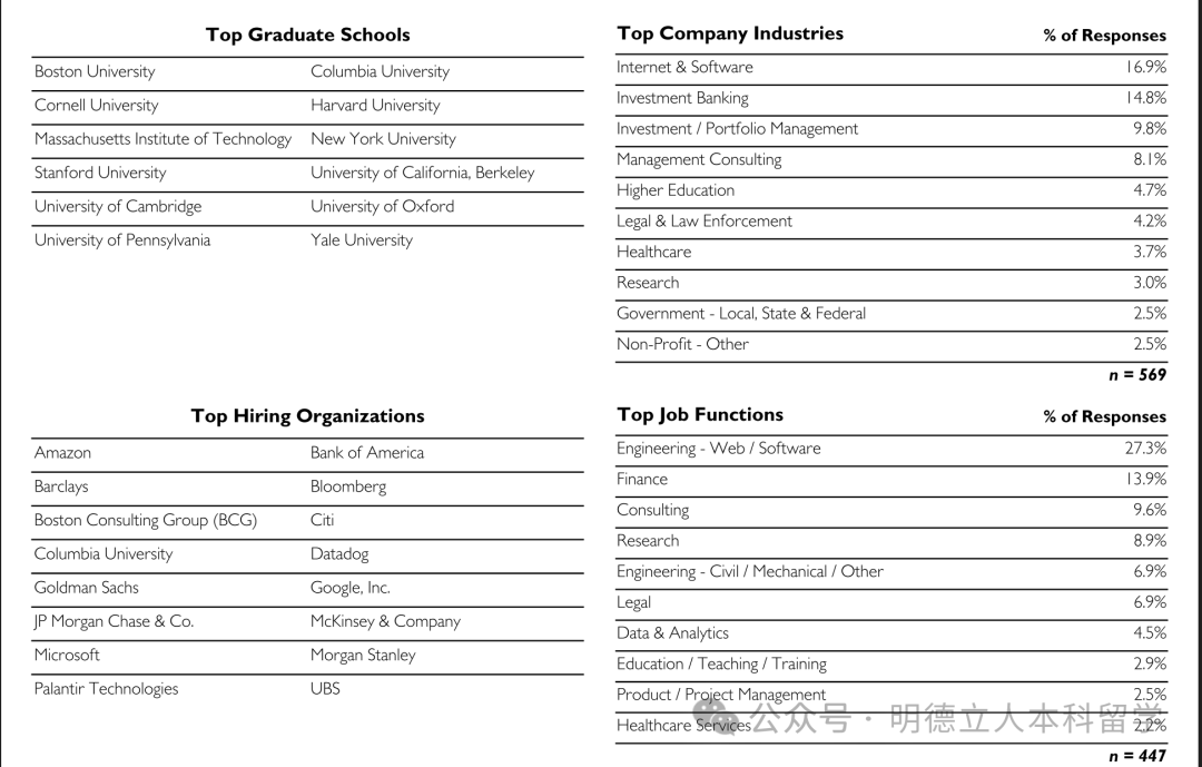 金融/保险/房地产、学术/教育、技术、咨询和医疗保健是最受欢迎的五大就职行业。