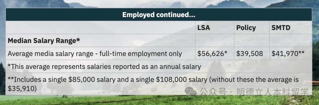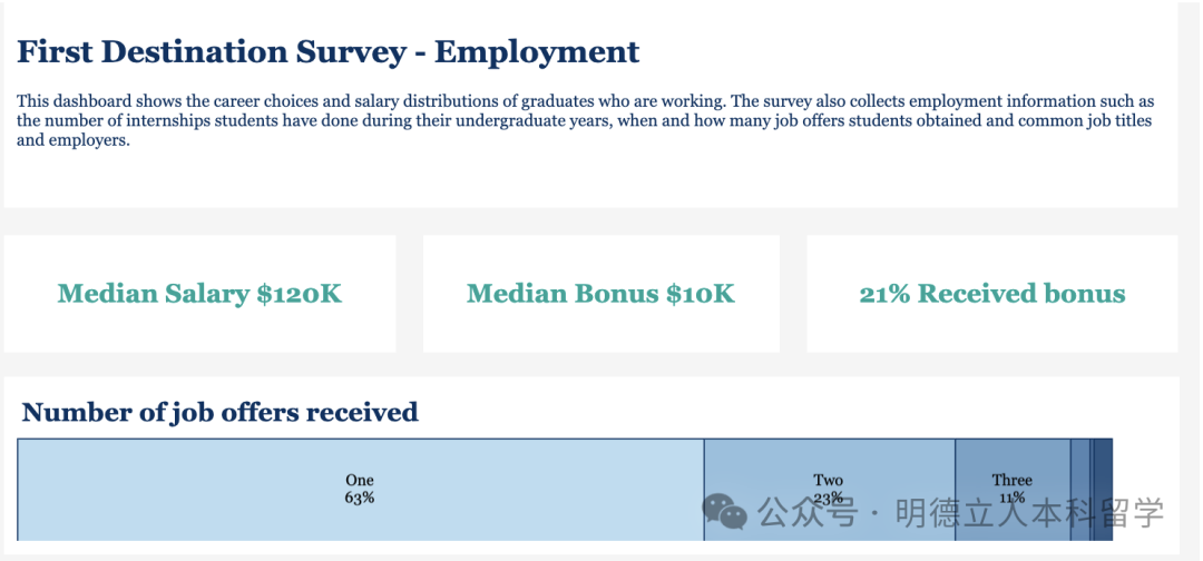 就业的学生中,40%的人年薪超过 11万美元,超过三分之二的人年薪超过 7万美元。