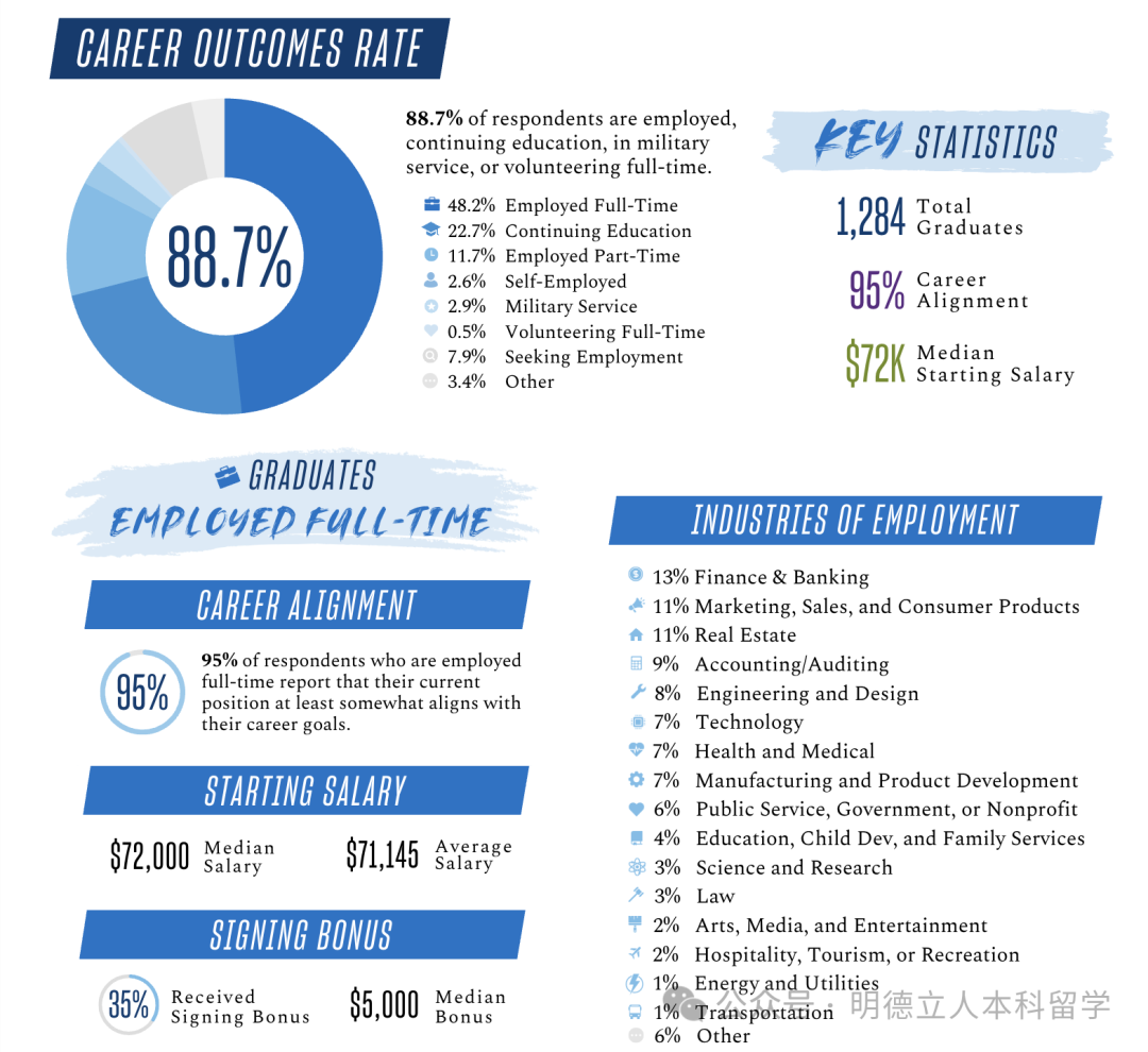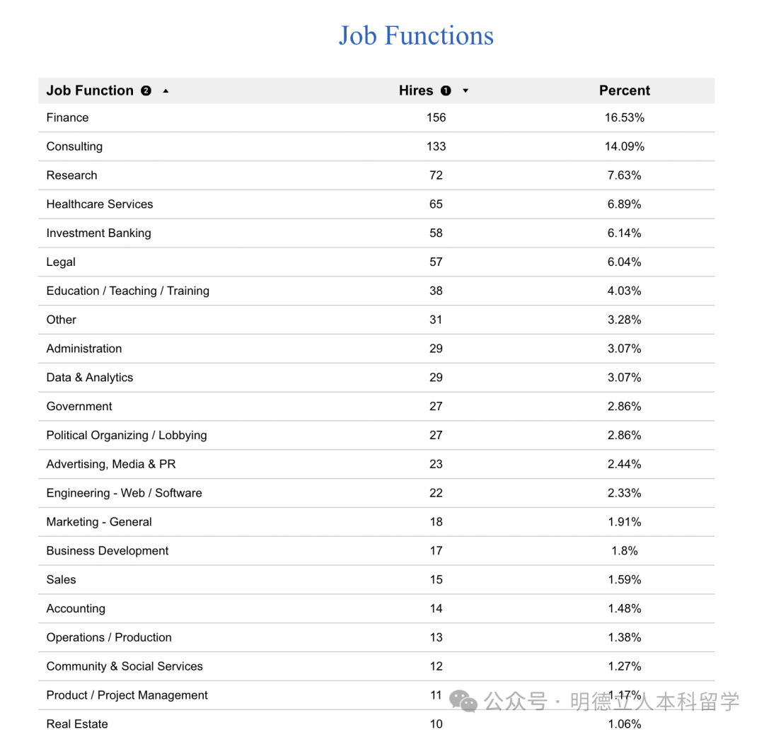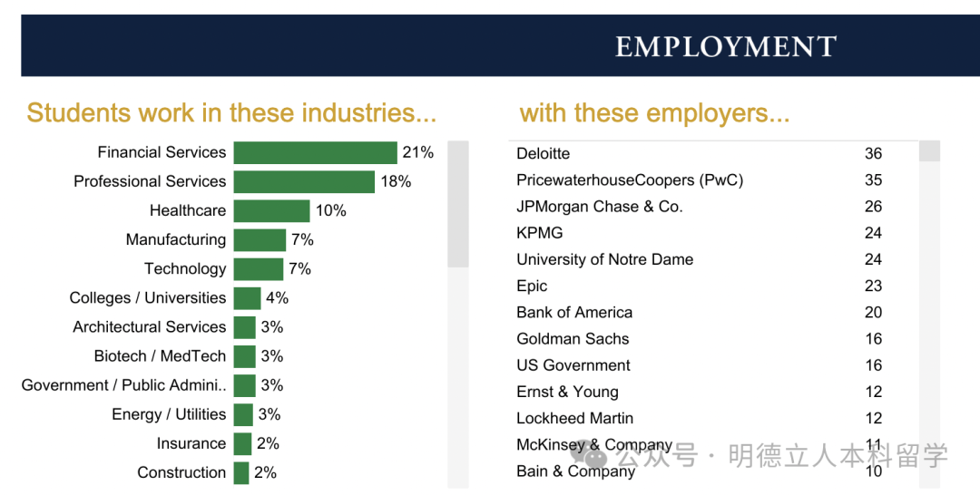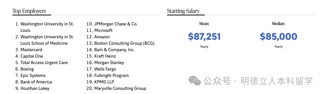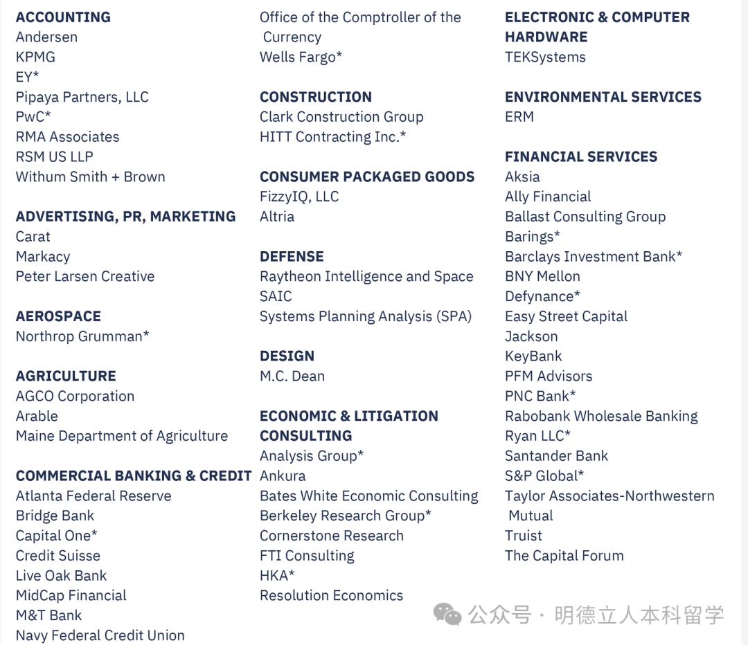 知名雇主包括:乔治城大学(留校就职)、高盛、摩根大通、波士顿咨询、德勤、美国银行、Citi、摩根士丹利、贝恩咨询、PwC等。