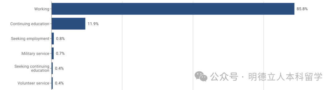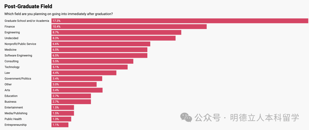 17.3%的2024届毕业生已计划继续深造,10.4%的人选择的是金融学位,8.7%正在攻读工程学位。