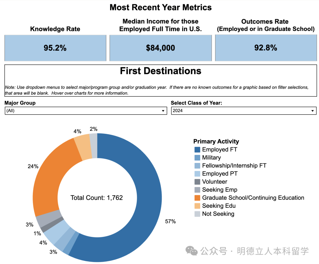 深造率47.3%,31.6%的本科生选择了表演和艺术项目。