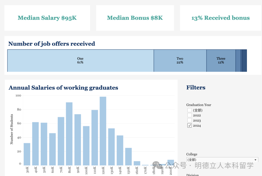 2024届本科毕业生就业率是66.1%,平均年薪87,769美元,约63万。