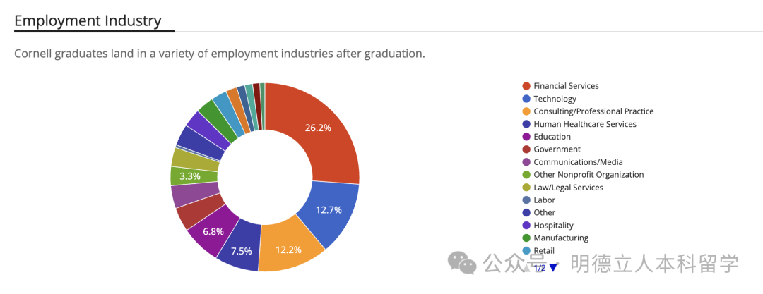 宾大本科毕业生就业主要集中在金融服务(41%)、咨询(18%)、科技(11%)、医疗保健行业(7%)。