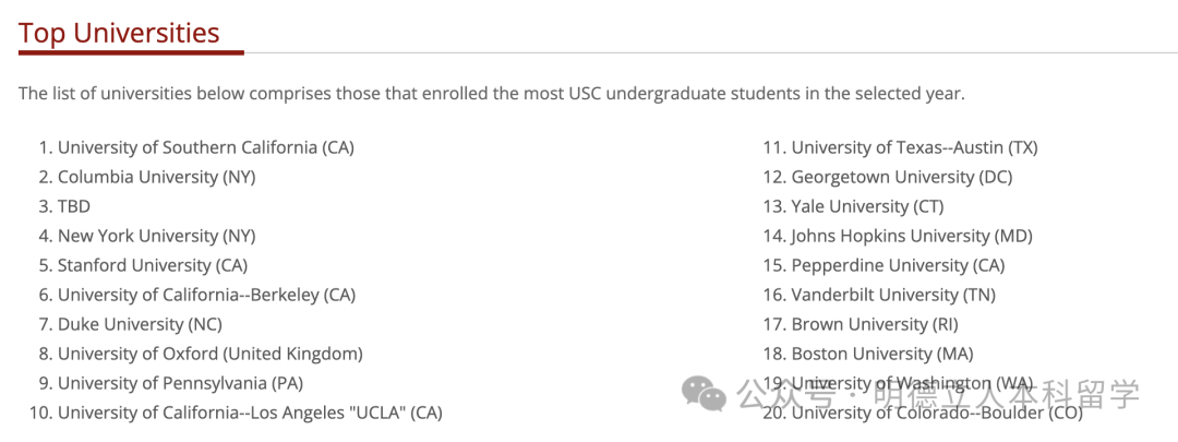 南加大学生的读研率是16.4%,进入最多的研究生院校是南加大、哥大、纽大、斯坦福、UCB、杜克、牛津、宾大、UCLA等。