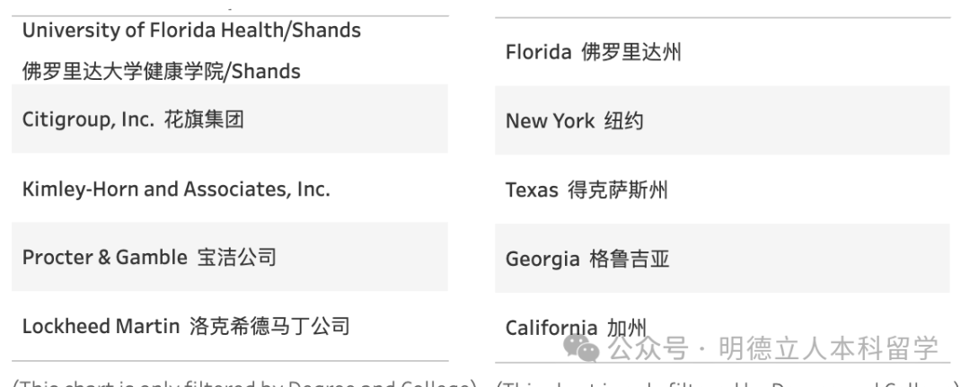 排名前5的雇主是佛罗里达大学健康学院、花旗集团、金利-霍恩律师事务所、宝洁、洛克希德马丁公司。