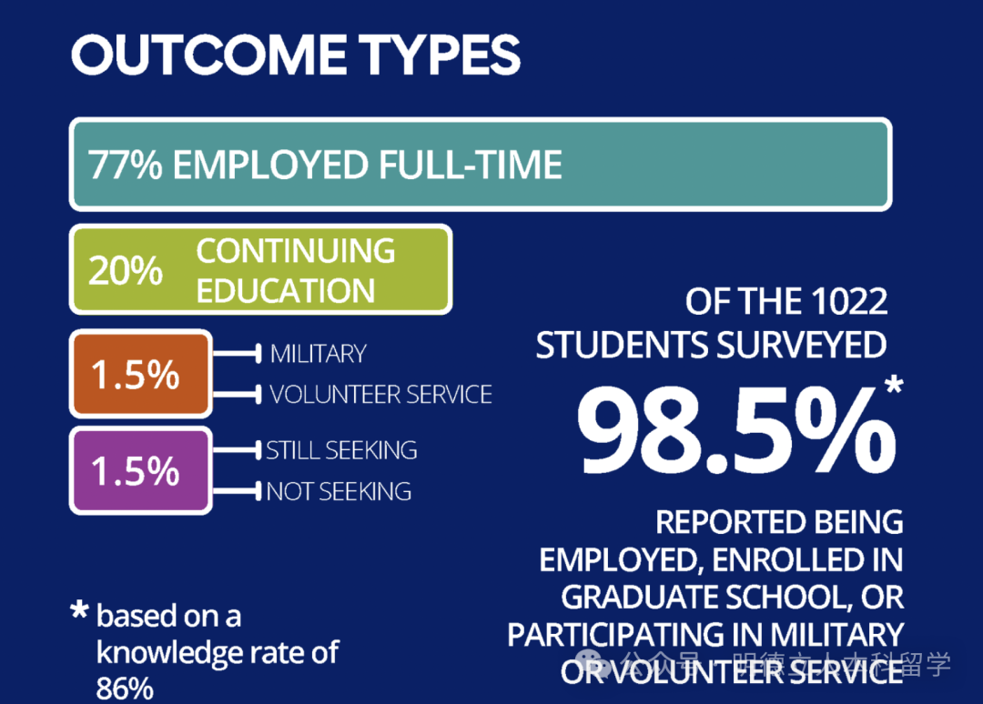 38.6%本科毕业生继续读研深造,进入的大学有哥大、杜克、佐治亚理工、JHU、MIT、西北大学等。