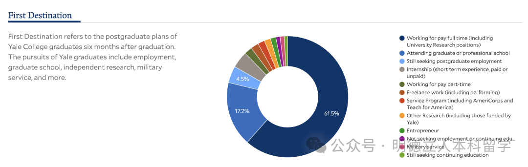 耶鲁2024届本科毕业生,17.2%继续深造,61.5%直接就业,平均年薪90097美元,约65万元。