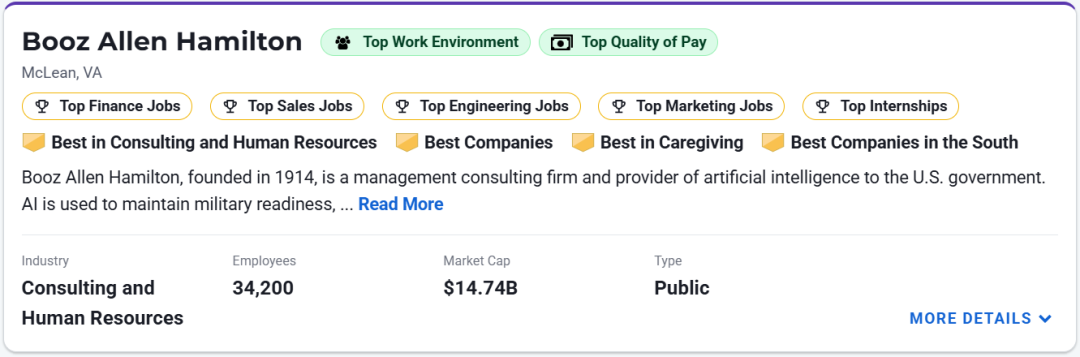 值得注意的是,US News的“最佳公司”榜单并非一个统一的排名,而是基于薪酬福利、工作生活平衡及职业发展等多维度的严格评估后,在不同领域内分别授予的权威认证。