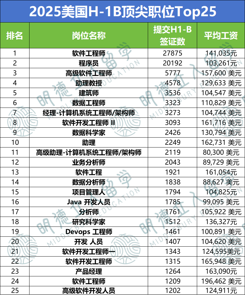 前25名中,超过半数岗位与软件开发、数据科学及系统架构直接相关,这也表现出了美国市场对高级技术人才的旺盛需求。