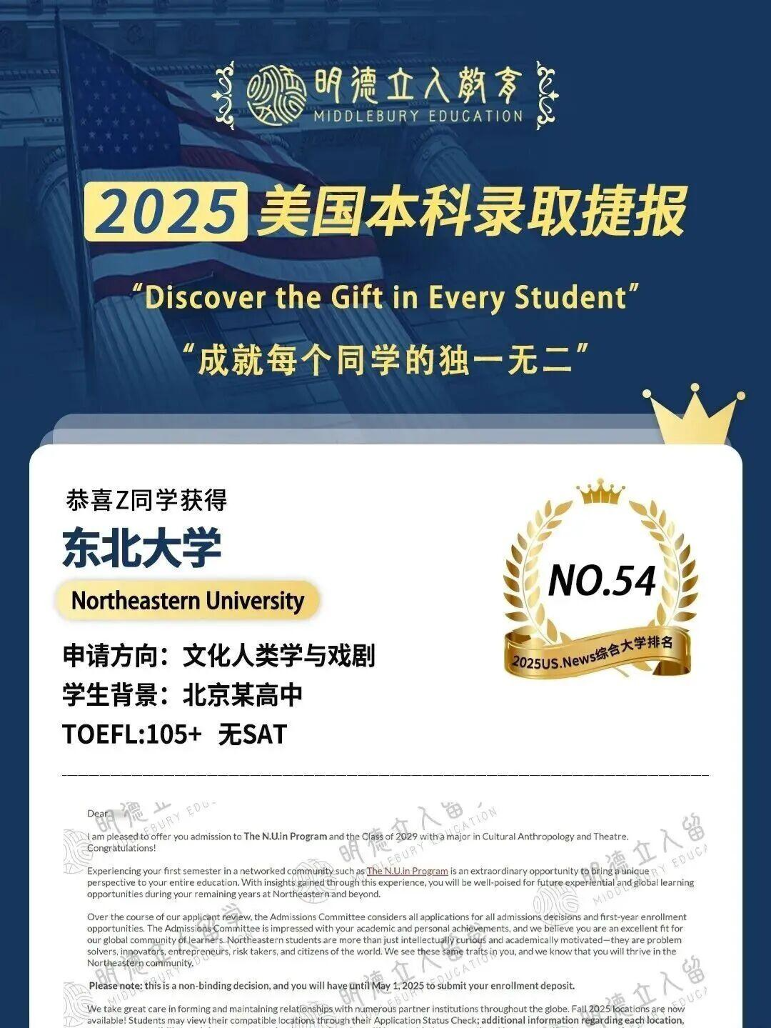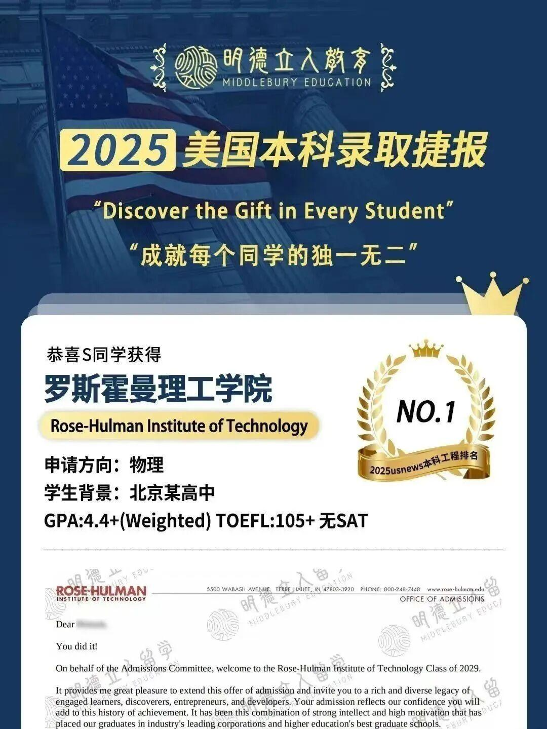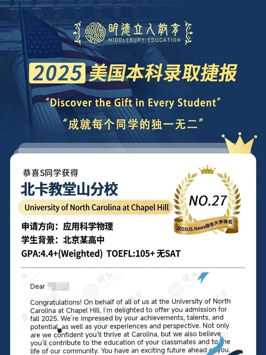 最终,当录取通知书到来时,S同学的故事印证了:明德团队的意义在于看见每个学生的独特 —— 哪怕是 “三无” 少年,只要守住对学科的真诚,再加上懂他的规划助力,就能在申请中走出属于自己的路。