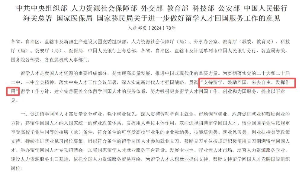 2025年中央组织部等多部门联合发布了《关于进一步做好留学人才回国服务工作的意见》,明确提出: