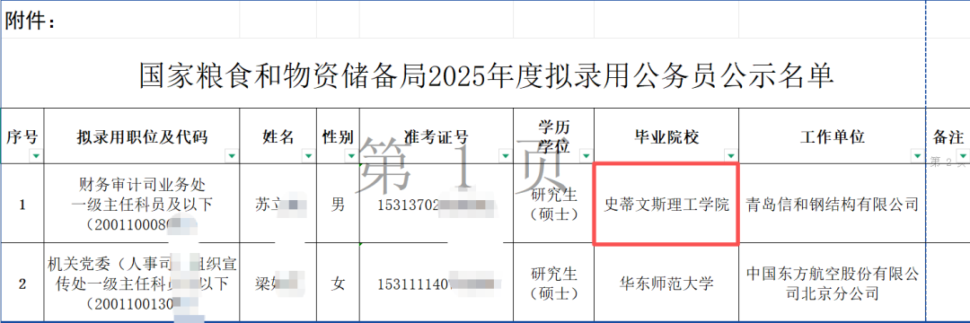 同样还有粮食和物资储备局,共录取了2人,其中一人就是美国史蒂文斯理工学院毕业的硕士毕业生。