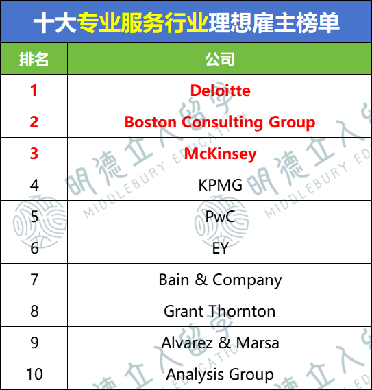 同时,咨询类公司集体崛起:波士顿咨询(BCG)、麦肯锡、PwC、EY等纷纷进入前十。