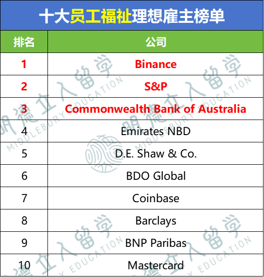 同时,eFC也给出了打工人评选的——薪酬、回报、文化、福利最好的10家公司: