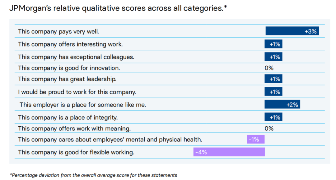 >>为什么选择摩根大通?核心原因有二:一是认为其薪酬优于竞争对手;二是对其企业文化给出了高分评价。