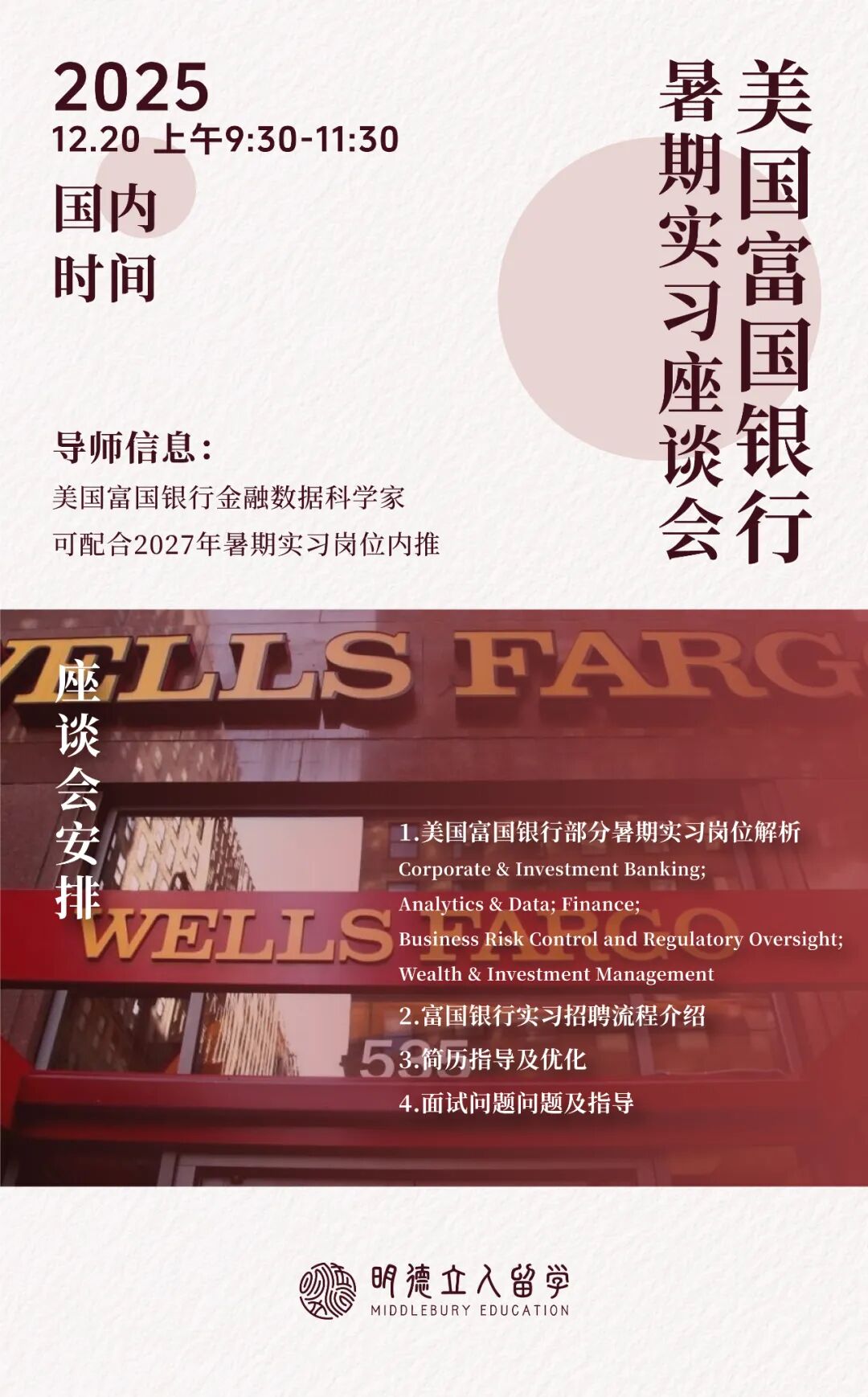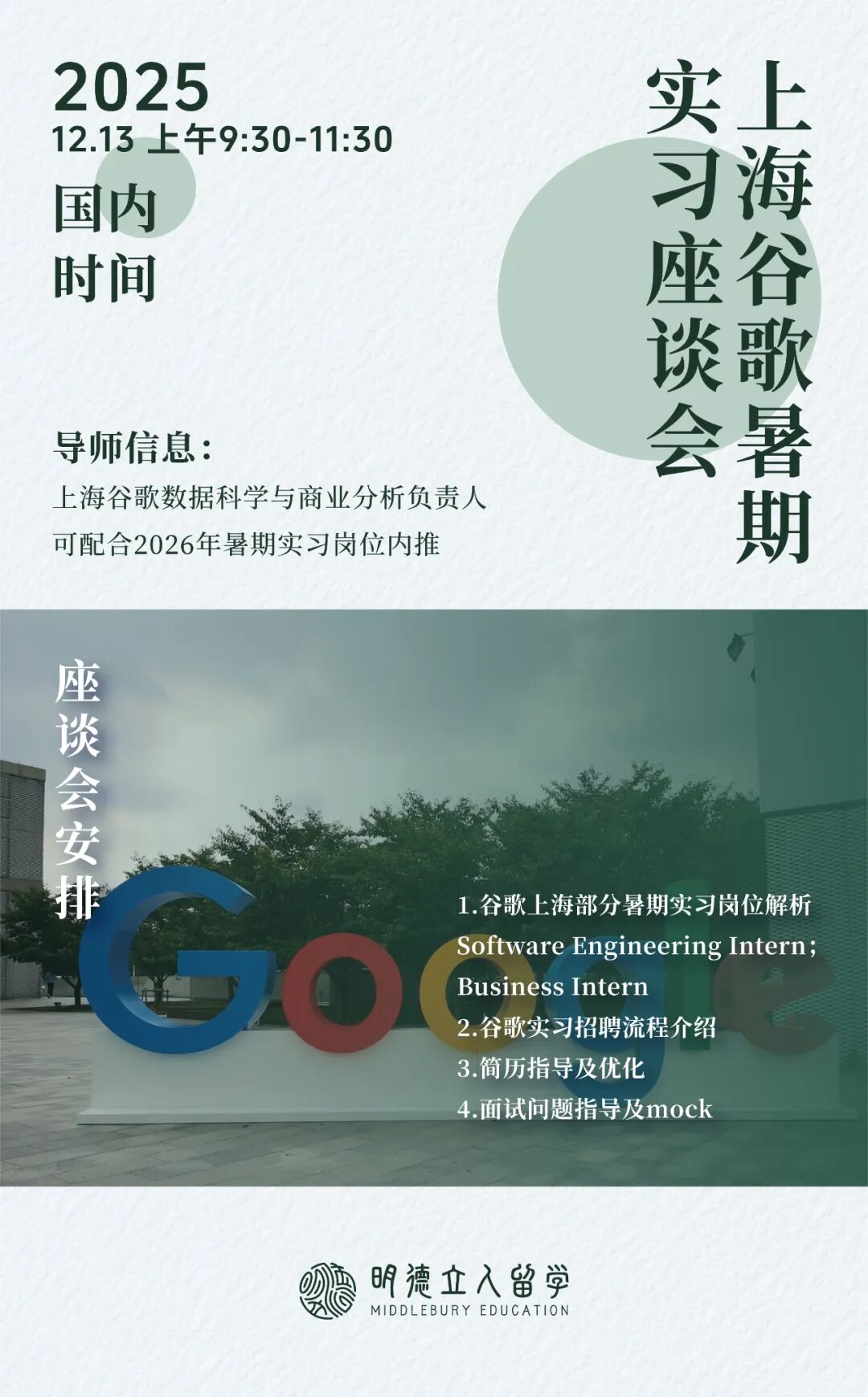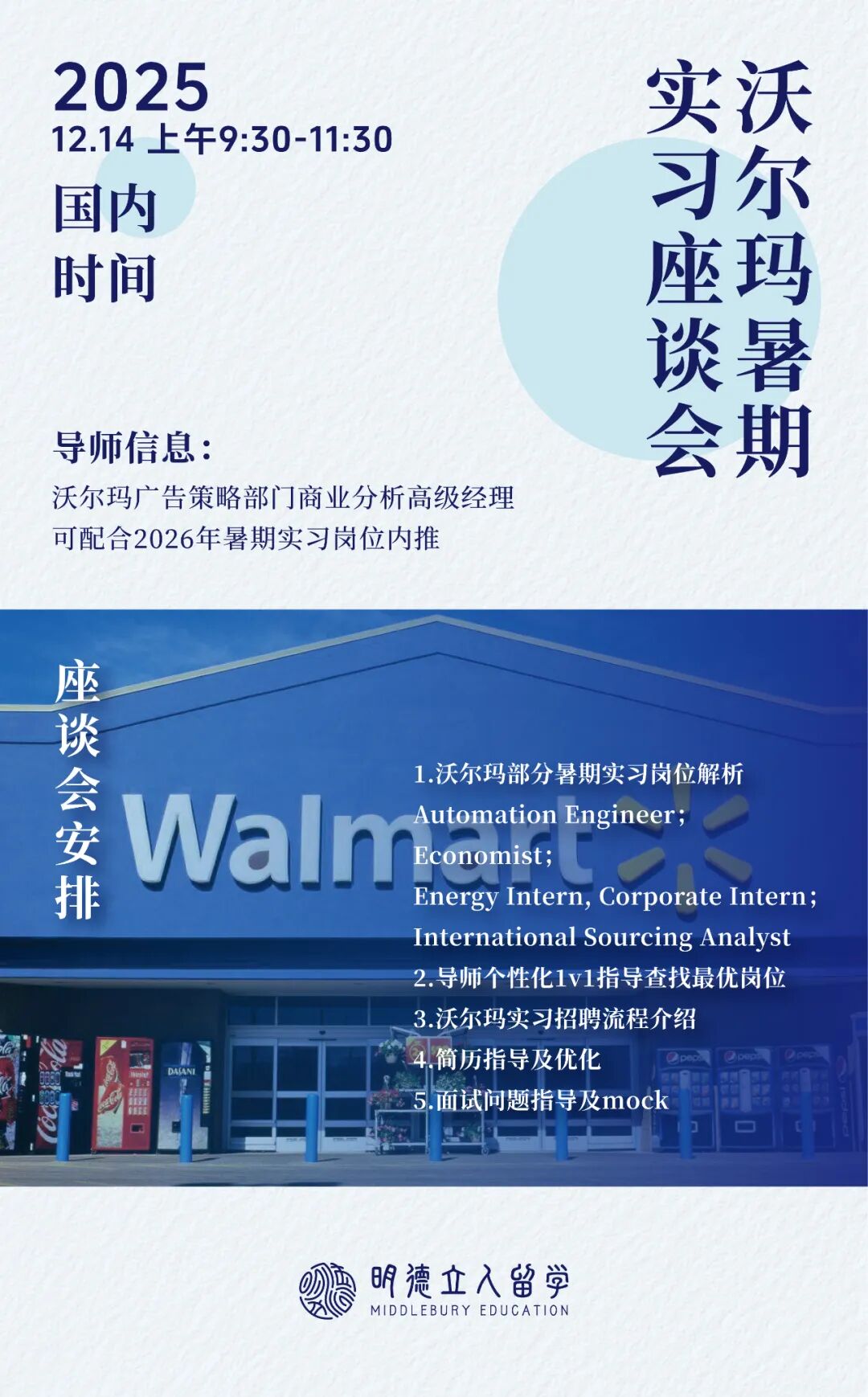 四场高含金量实习岗位座谈会接连开启!明德精准对接美国、上海两地优质实习资源,可内推!可内推!可内推!