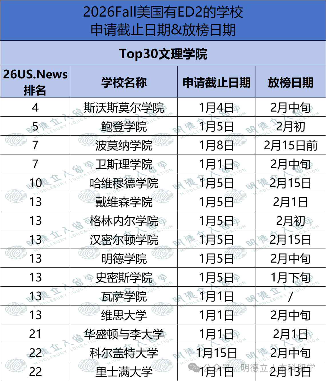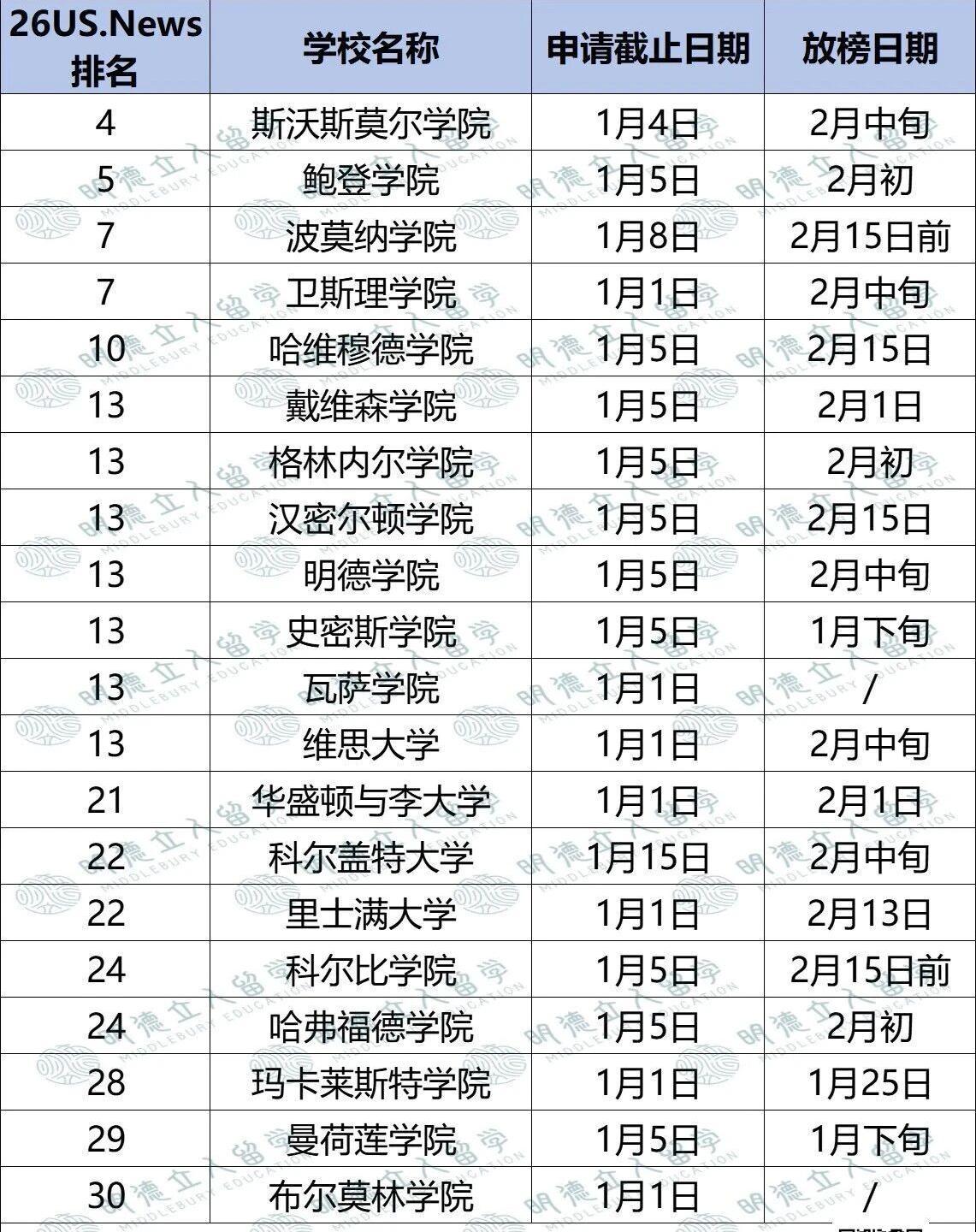 ➡️1月5日截止的有:鲍登学院、哈维穆德学院、戴维森学院、格林内尔学院、汉密尔顿学院、明德学院、史密斯学院、科尔比学院、哈弗福德学院、曼荷莲学院