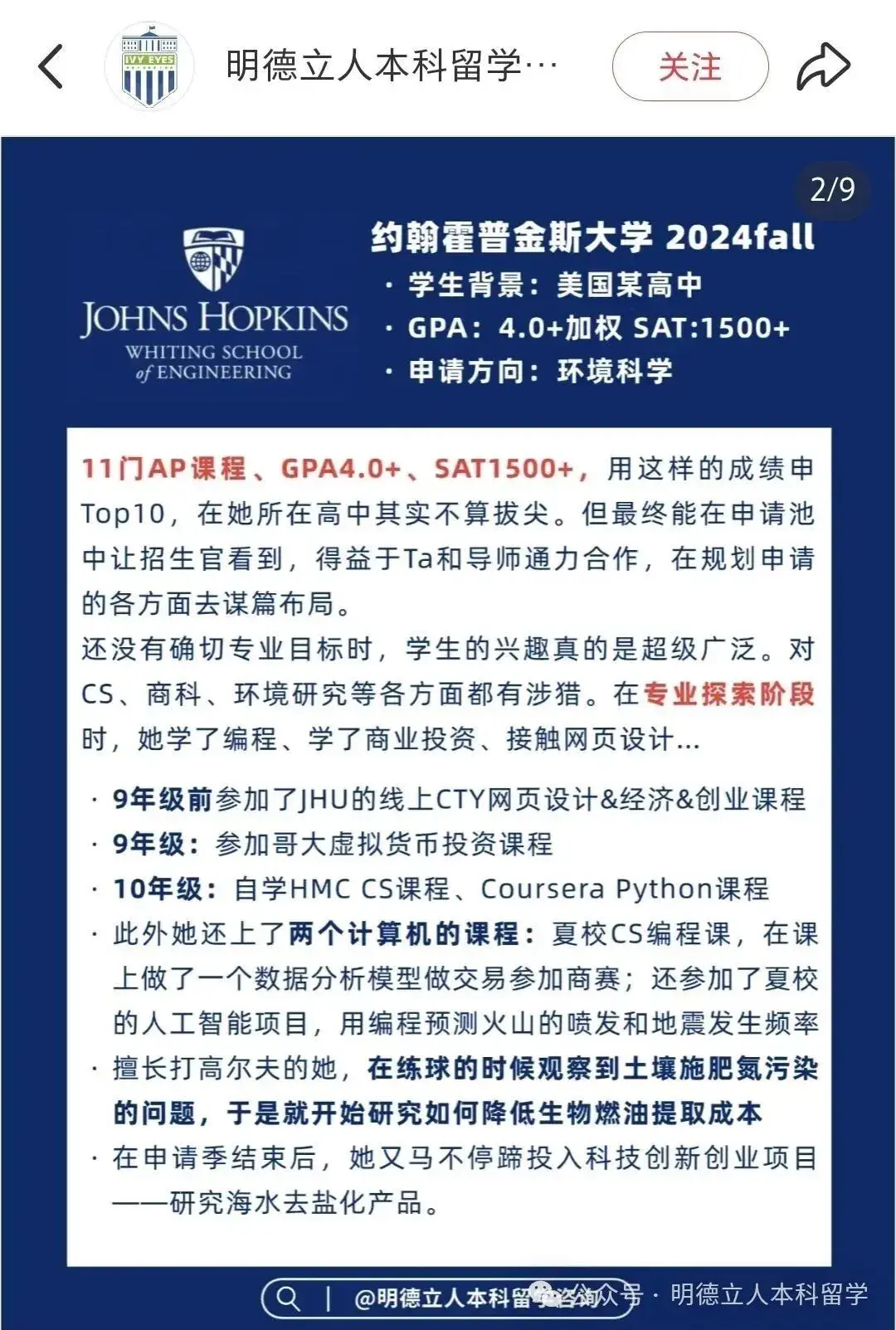 被 JHU 录取的学生,大多有“硬核科研 + 人文关怀” 的组合。