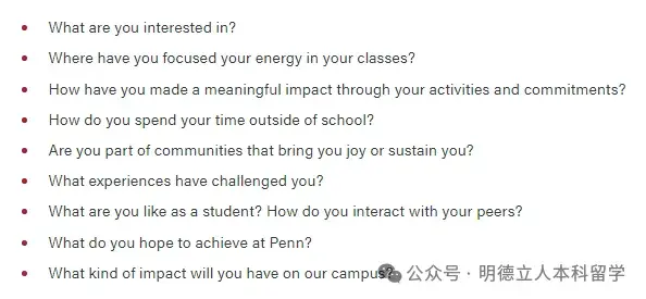宾大审查申请时,会询问以下问题: