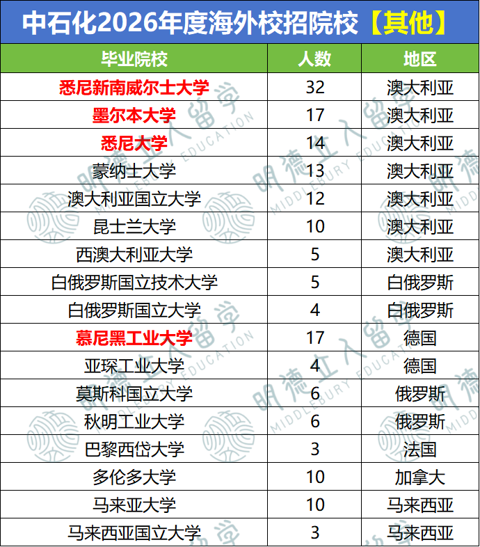 如果你的目标是回国后进入中石化等国企,以下这些院校可重点关注,这些是央国企录取较多的院校: