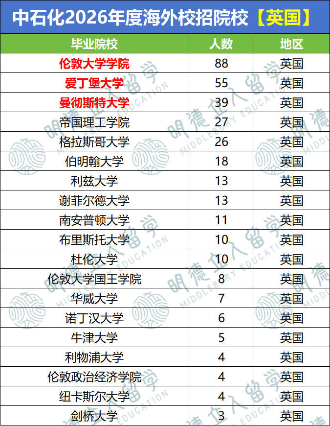 爱丁堡大学拟录用55人、曼彻斯特大学拟录用39人,也是颇受央国企喜爱的院校。