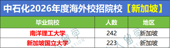 中石化录取新加坡地区的留学生最多,总占比达为33.3%。