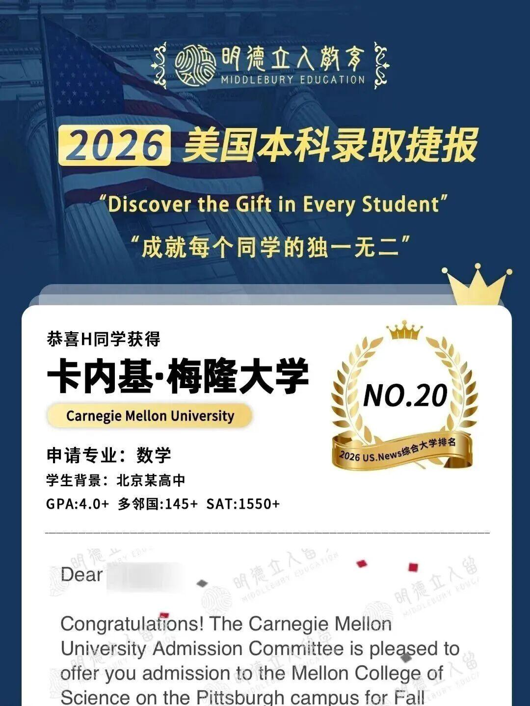 深耕美本申请多年,今年明德的孩子也获得了相当不俗的成绩!