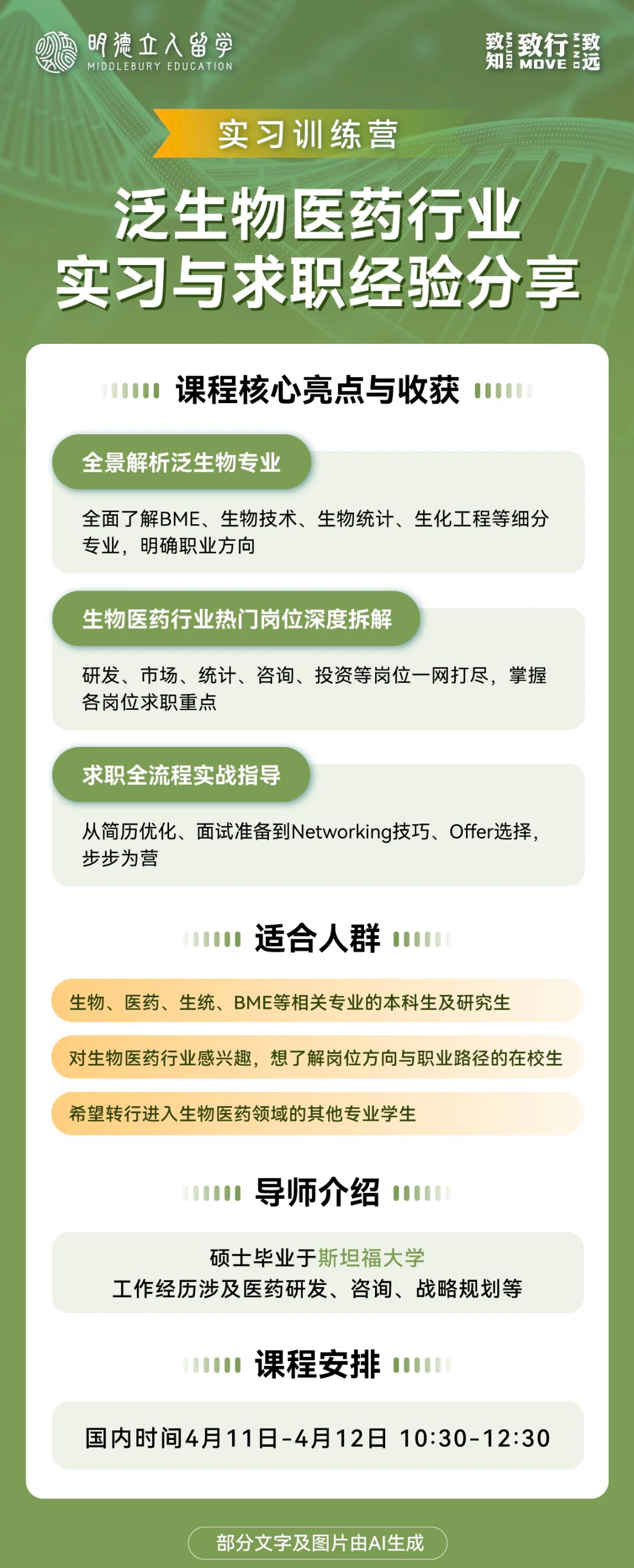 📍 适合人群: 生物/医药/生统相关专业本硕、想转行医药领域的学生。